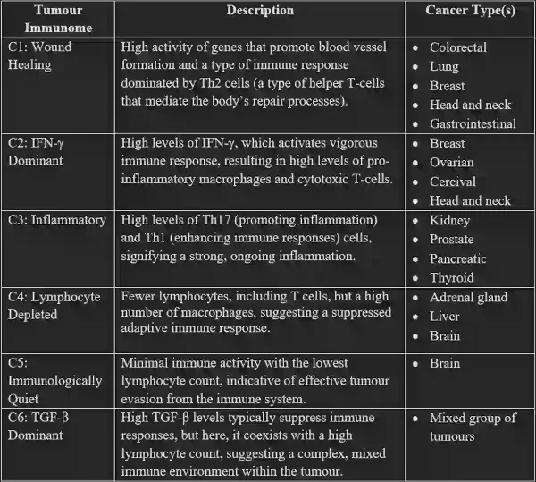 Table 1. The six subtypes of tumour immunome. Source: Thorsson et al. (2018), Immunity.